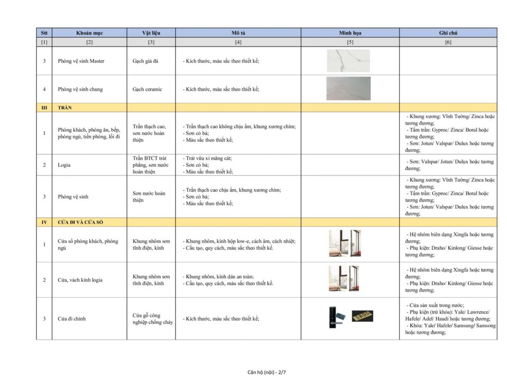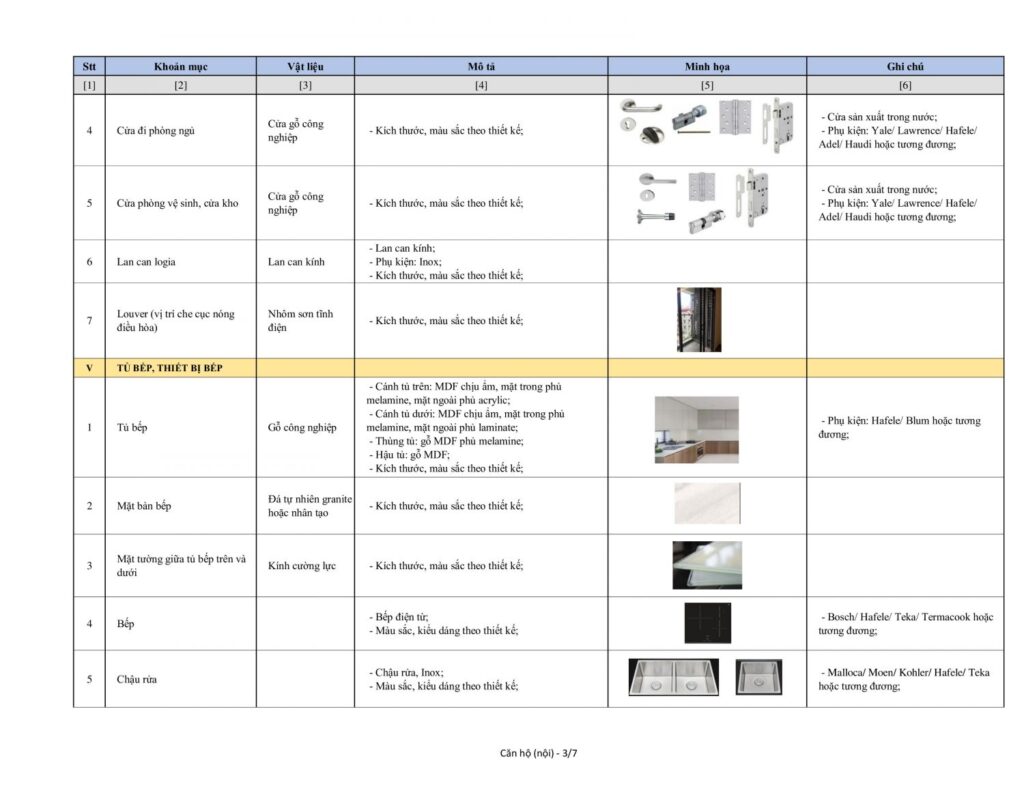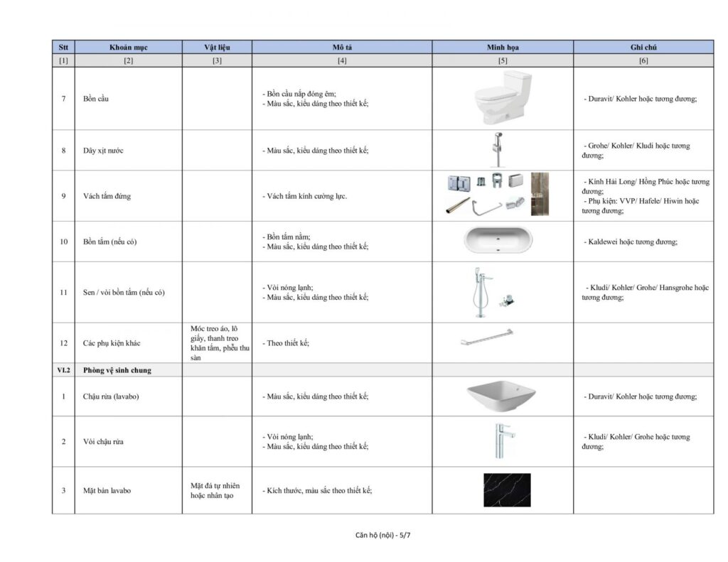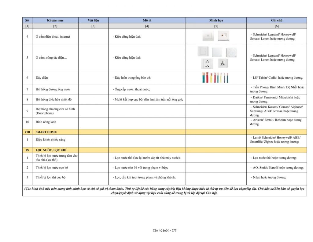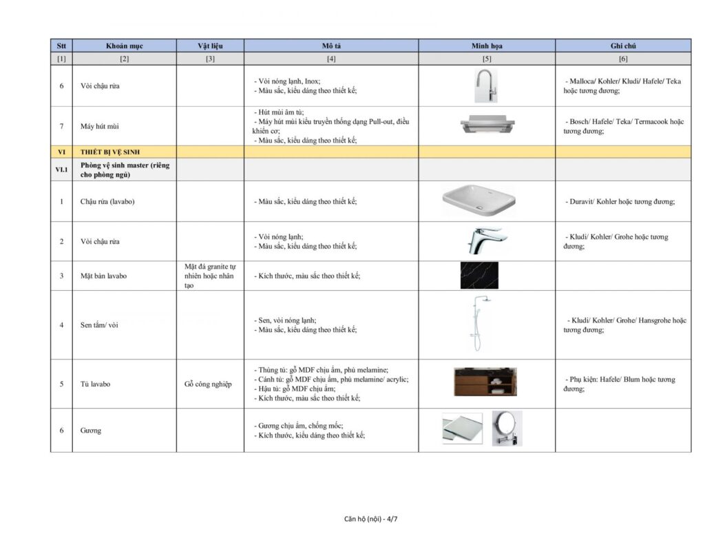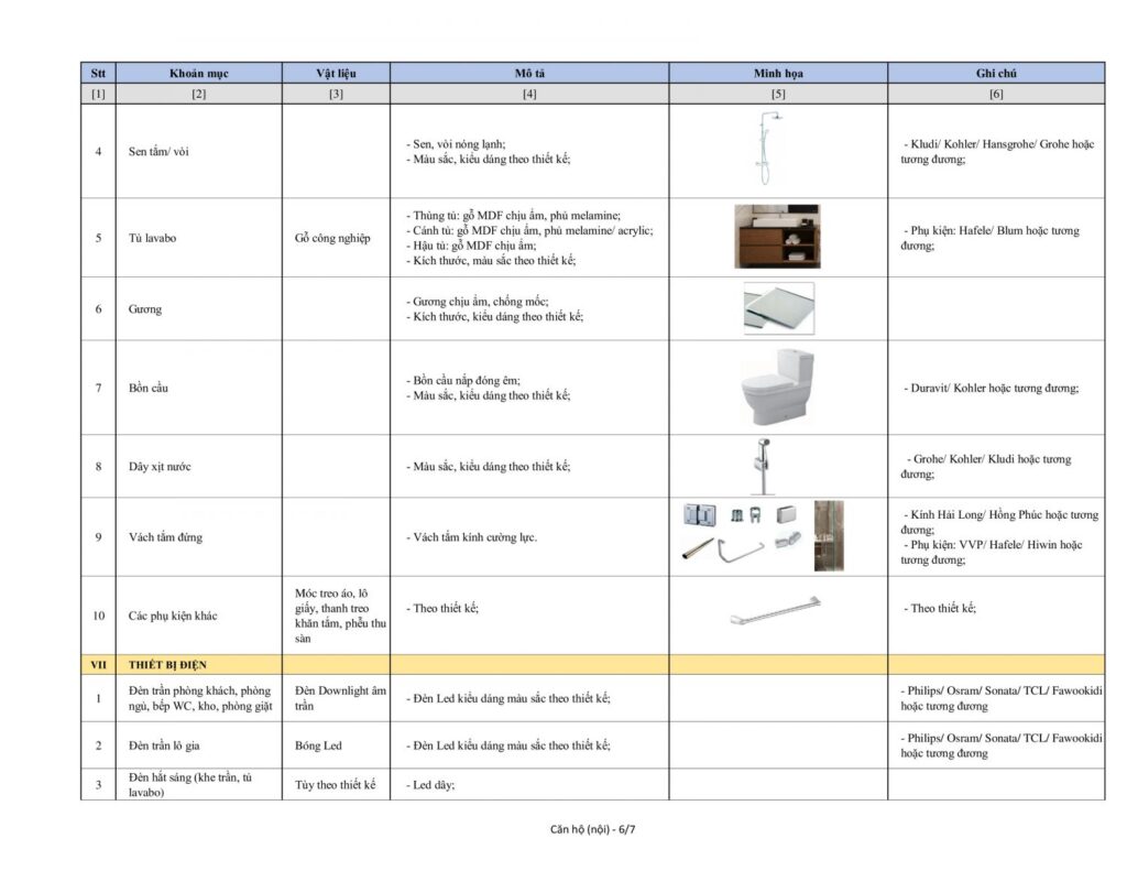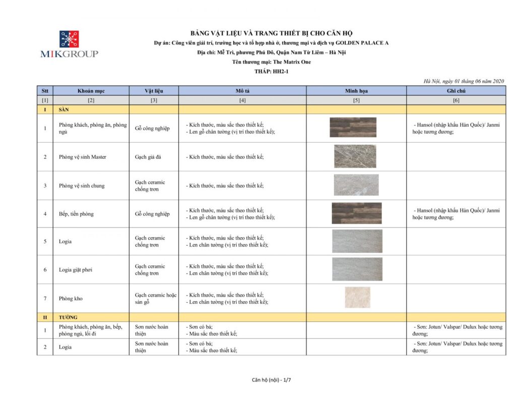 Kính gửi quý khách hàng cô chú anh chị chi tiết thiết bị bàn giao tại dự án The Matrix One Mễ Trì