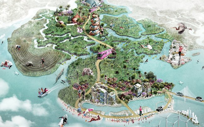 - Tầng hầm: 4 hầm (thông hết khu đất) rộng 55.332m2, với 1.200 chỗ để ô tô